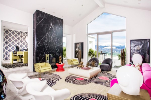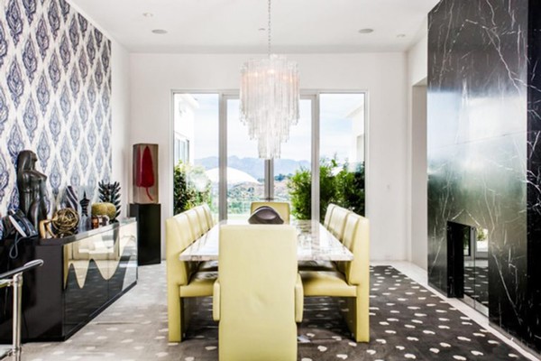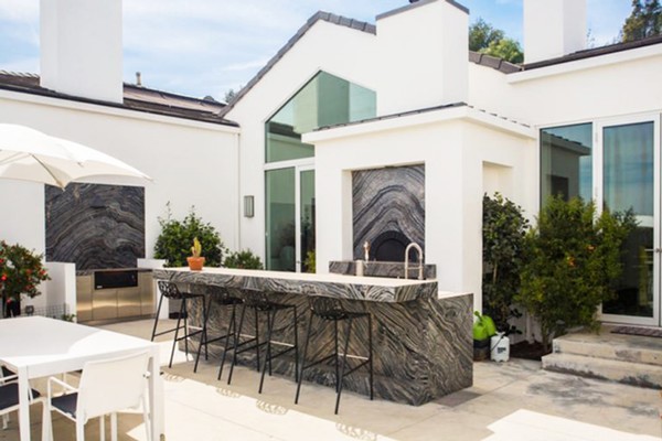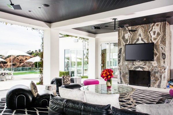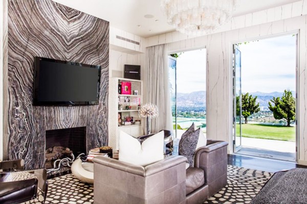Where else can you entertain your fellow celebrities except on this mind-blowing backyard patio. As if the huge marble bar wasn’t enough, agate-inspired backdrops really steal the show. (Photo via Trulia.)