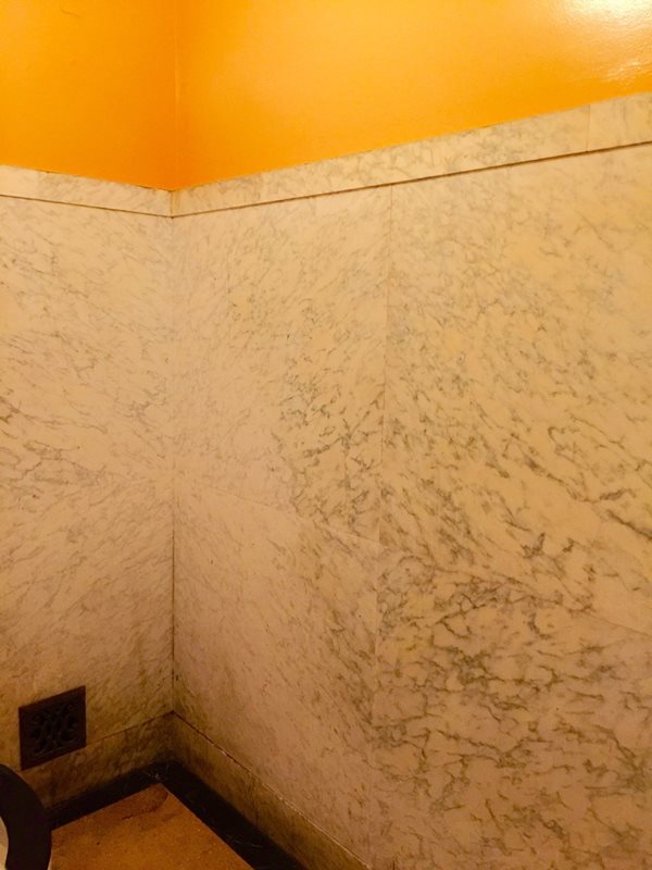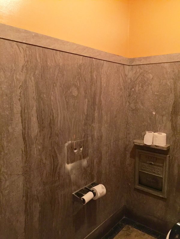 Each bathroom stall in the ladies restroom features a unique kind of marble, making this historic movie palace the epitome of opulence.