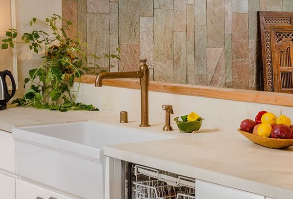 Whether the setting is an urban loft, a country villa, or anything in between, the rustic/industrial look is a hot trend right now. With the rustic/industrial look as their signature style, Sonoma Forge offers Made in America kitchen and bath faucets with the look of hand-forged metal. The Brut series is reminiscent of raw plumbing parts. The tall tap with elbow spout makes a strong design statement, and the pull-down spout offers the sink area functionality that’s required.